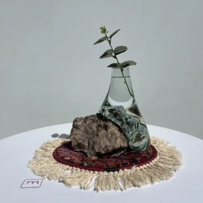 گلدان شیشه و سنگ