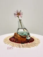 گلدان شیشه و سنگ