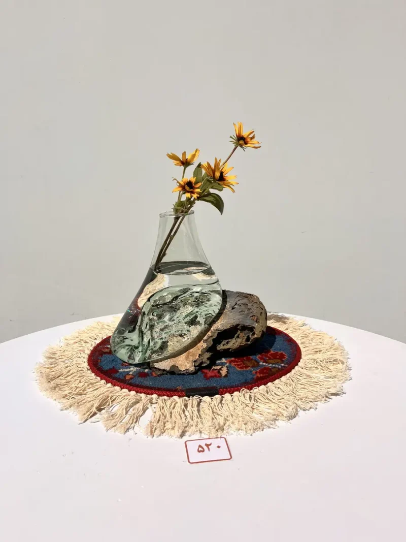 گلدان شیشه و سنگ عدد