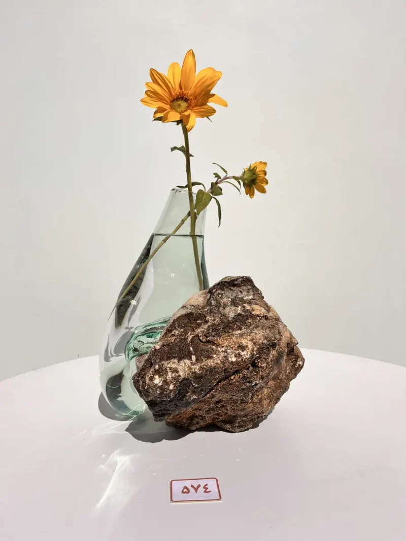 گلدان شیشه و سنگ